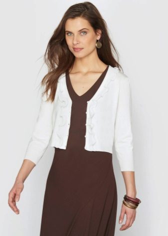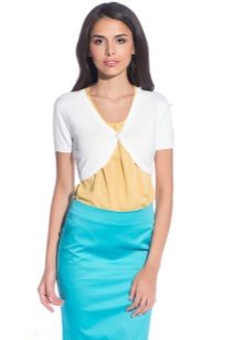 Of course, a bolero will be appropriate with any clothes, and models of denim, knitwear and any other material allow you to wear this part of the wardrobe every day.