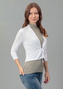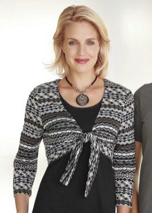 It is better to choose an option that does not need to be tied or fastened - let the edges of the bolero lie beautifully on the chest.