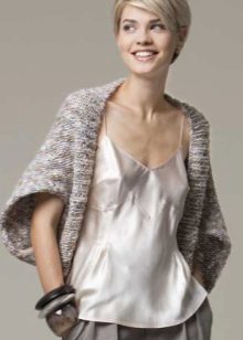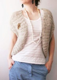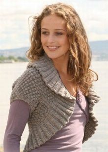 A new trend is bolero vests that have an open back. Designers made this part of the wardrobe independent, balancing on the verge of evening and office style. Another popular variant of bolero is made of thin yarn, but in large knitting.