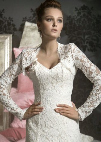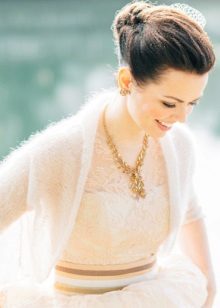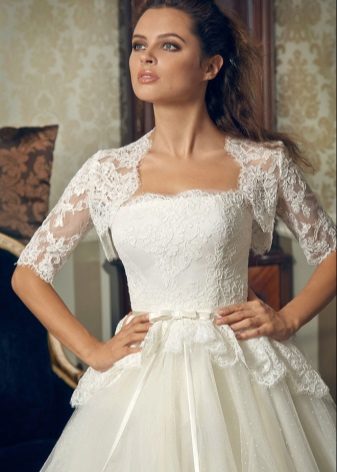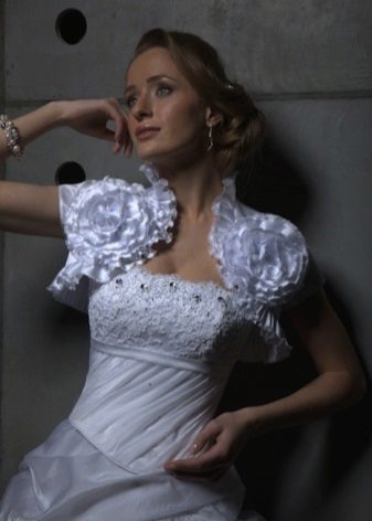 In addition, the bolero will help hide the imperfections of the figure or skin - if the bride has problem skin in the back or shoulders, this element of clothing will come in handy.