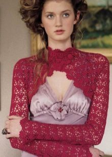 For light, lace or lace products delicate shades are relevant - these are natural, golden or sand tones, shades of gray. Options that can replace outerwear are more juicy - here you can find lilac and violet boleros, variations of a deep red color.