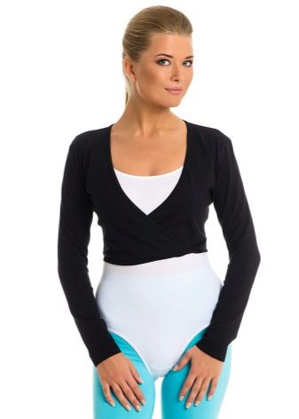 The bolero does not constrain movements, but at the same time it warms the shoulder girdle, helping to avoid injuries and muscle strain. Also, the bolero is part of the costume, for example, at the performance of gymnasts. It does not prevent the athlete from performing the necessary elements of the number, while making her image spectacular and spectacular.