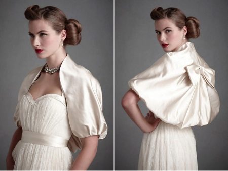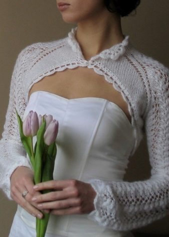 Another option for an “independent” bolero is an option for a wedding or wedding. In the first case, the bolero is useful in the registry office to create a more rigorous image, it will save during the photo shoot, if the bride shakes, helps to diversify the outfit in the photographs.