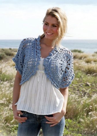 Openwork bolero made of cotton or silk will fit perfectly into the summer wardrobe, and models knitted from mohair or “grass” yarn are universal at all - they can be worn on a cool July evening and in the office in the cold season.