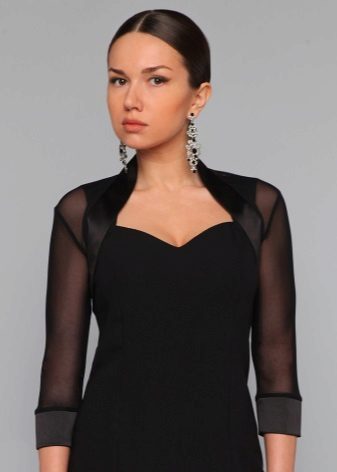 Bolero as an element of evening dress can at the same time become both a highlight of the image and a functional thing. Thrown over the shoulders, the bolero will not make the image heavier, but will warm its owner if the event takes place in a cool room or in the cold season.