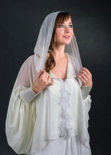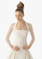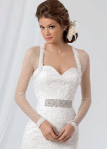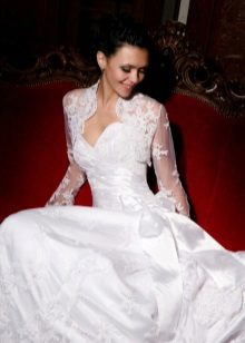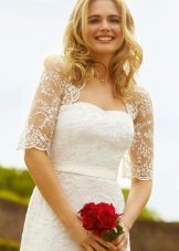 An excellent option for full brides will be a model with a long sleeve, not narrow, but slightly loose.Also a good choice would be a bolero in the form of a cape, complemented by long gloves. The bolero is slightly longer than the shoulder blades, expanding downwards will help to hide the fullness of the waist and make the bride slimmer.