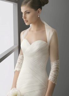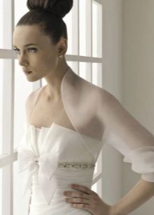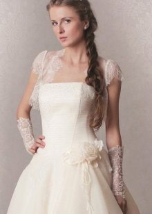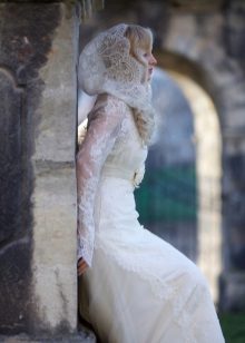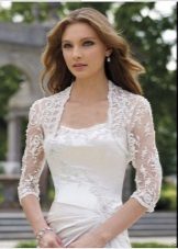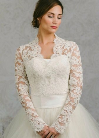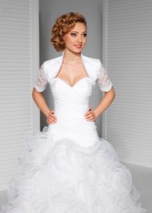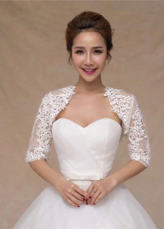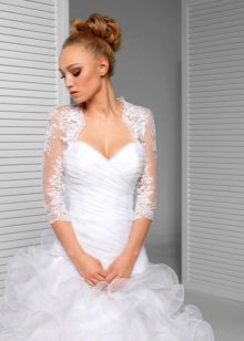 When choosing a model, it is necessary to take into account the time of year in which a wedding celebration is expected. Refinement and femininity of the figure will be given by light lace boleros, combined with the pattern of the dress and matching in color. You will get tenderness and airiness when choosing a bolero made of tulle, gas net or chiffon.