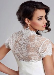 Each bride can choose her own wedding bolero model. Be it a model with a stand-up collar from gabardine or satin, or with a round neckline and clasp, with a flounce and ruffles, decorated with embroidery, beads, beads, stones. A sleeveless model, but with a spectacular lace pattern, will become a decoration for slim girls.