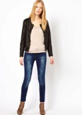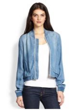 Jeans. One of the most versatile materials, oddly enough, it is for sewing a bomber is not used very often. It will suit jeans of excellent color.