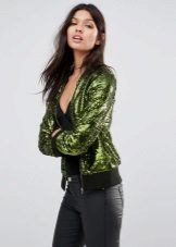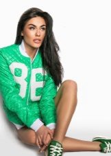 - Bomber greenWhether it is a cheerful light green or refined emerald, it requires the same life-affirming shades from the rest of things - a lemon top, skinny brown jeans, platform sneakers or a bright yellow blouse, brown corduroy skirt and matching shoes.