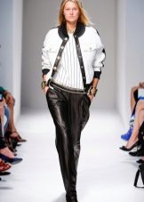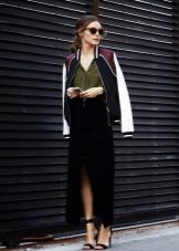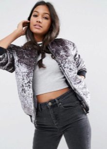 Silk or satin. These materials are capable even of a sports model to make an elegant thing suitable for publication. If we are talking about a style other than boho, it is better to combine bombers from these fabrics with the same exquisite materials of other things, for example, a silk bomber will perfectly suit a chiffon blouse and trousers made of glossy fabric.