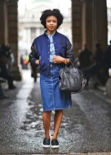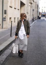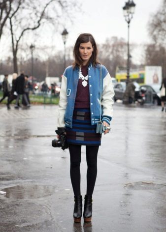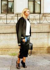 Most people who choose a bomber jacket as outerwear still prefer to observe a semi-sports style and wear it mainly with jeans. But an interesting solution is the combination of a bomber jacket with a narrow skirt, if the fabrics and colors of things are taken into account correctly. A monophonic or two-tone bomber jacket with a checkered shirt looks very stylish, especially if the colors of the shirt's cell overlap with the colors of the bomber itself. In the case of a monochrome version of all things, a beautiful scarf that does not allow you to slide into gloom can become a bright accent.