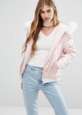 - Pink with White Bomber Jacket - A find for young ladies. A model made in such a color scheme can suit both blue jeans and a romantic dress in pastel colors with a wide skirt, and regardless of the chosen one, you can safely put on both white slippers and high-heeled shoes.