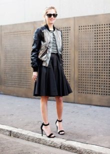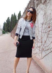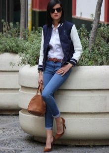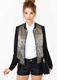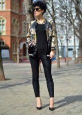 - Bomber jacket - One of the elegant varieties of models of this universal outerwear. Made of jacquard fabric with a beautiful print, it can be worn with a knee-length pencil skirt, white blouse, shoes with stable heels and is quite acceptable even for the office.