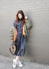 The versatility of the bomber also implies the versatility of the choice of shoes: from sandals to grinders. In this case, one should be guided only by one's own taste and concept of the appropriateness of one or another image.