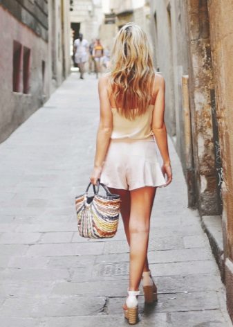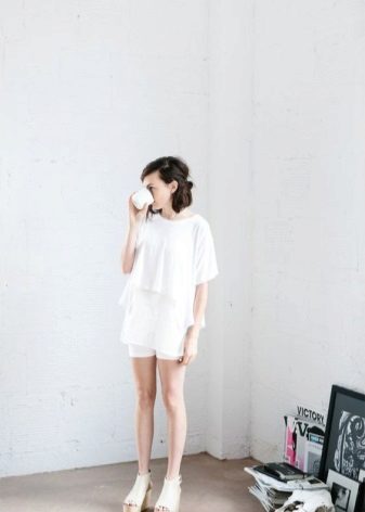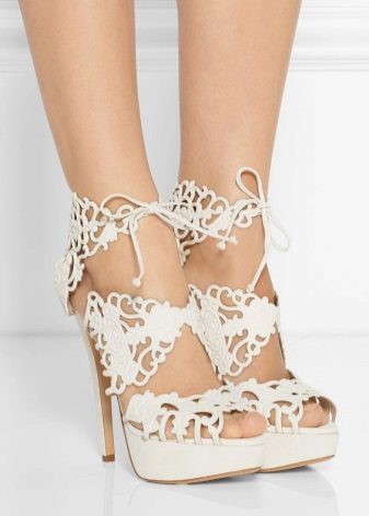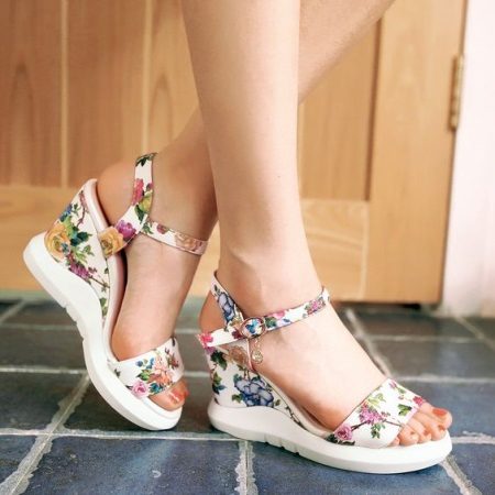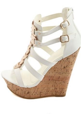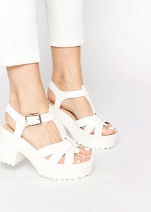 The classic models of white sandals on the platform are suitable for a variety of women's wardrobe items, ranging from a straight-cut skirt to sophisticated chiffon dresses. If the shoes are “equipped” with a tractor sole, it is best to emphasize its originality with the help of summer shorts or a fluffy mini-skirt.
