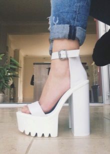 Such eye-catching and eye-catching shoes as white platform sandals require a thoughtful approach to the formation of a common image.