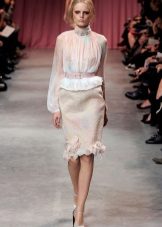 Fashion house Christian Louboutin offers this season to shift the accent from the toe, and place the decor on the heel of sandals. White stiletto sandals with a chiffon tail are a prime example.