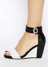 White wedge sandals will be a great option for a city walk or gatherings in a summer cafe. They will add grace and a few centimeters of growth, but will be much more stable than sandals with heels. This excellent model is ideal for girls with full legs.