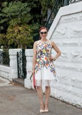 - White sandals are suitable for trousers, skirts and dresses with print, made on a white background.