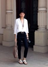 Beautiful white sandals are versatile shoes, they can be successfully fit into many summer sets.