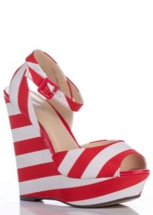 I would also like to note the trend of the combination of red and white colors in shoes. A red sole from Christian Louboutin or red insoles peering coquettishly at the fingers, red heels or red straps ... the designers have reworked this fashionable trend for different styles and tastes. Red and white fabric wedge sandals in a cruise style are found in many collections. Red and white striped, checkered or polka dot sandals are also popular with shoppers.