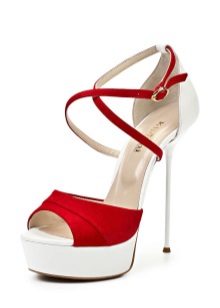 Designers use not only red and white colors, but also add details in black or blue. And Christian Louboutin offers his fans sandals that combine red and white colors with a leopard print.
