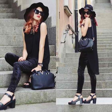 Soft, velvety suede gives any look elegance and sophistication, so most often suede black sandals are used to create an evening, festive or elegant look.