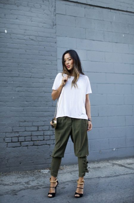 Bright accessories, a handbag, sunglasses, jewelry, etc. will help to make the image more visible and stylish.