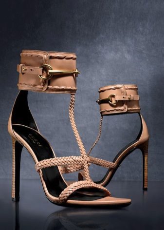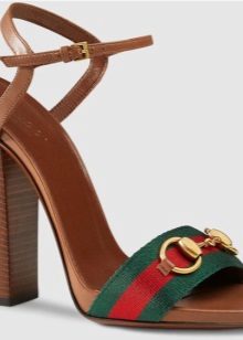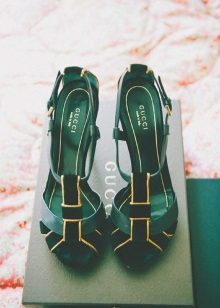 The presence of decorative elements - frills, ruffles, buckles, stones, bows and gold threads make these sandals a little grotesque, but this does not detract from their merits as brand shoes - quality, reliability and comfort always come first in the production of fashionable Gucci sandals.