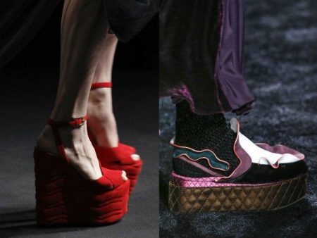 For more modest persons, you can choose models on a wedge - in such shoes you will not lose additional centimeters of growth, but you will look more restrained.