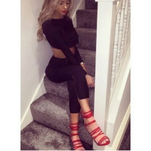 High-heeled red sandals should be worn by slender girls who are fully confident in the ideality of their forms. Wear them with a tight-fitting black dress on the floor with a low neckline and you will create the perfect image of a charming, sexy and attractive image of a real Woman.