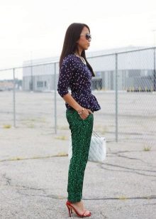 Since sandals are open shoes, trousers should not be chosen up to the heels - chinos are an excellent choice. This model in accordance with the color is suitable for visiting the office, and for a fun party with friends.