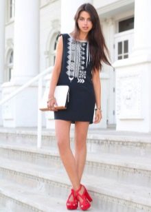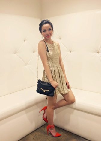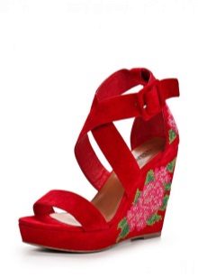 With red sandals, you can also combine models of seemingly absolutely incompatible shades. For example, a blue dress. If you choose the classic shades of both blue and red, then such an ensemble will look very original, and any girl will look extraordinary and modern in it.