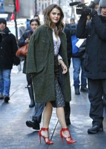 Luxurious stiletto heels are just the right fit for the elegant style of a midi-length pencil skirt. They will help to emphasize female bends and add harmony to the silhouette. An important point is the color of the skirt - with red shoes, plain black or white models look best.