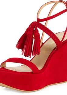 Sandals were no exception - more and more on the streets you can find fashionistas in red sandals with tractor soles. This model looks extraordinary and very modern. Not every girl dares to wear such shoes, so if you are not used to being in the spotlight, you should not get yourself such sandals.