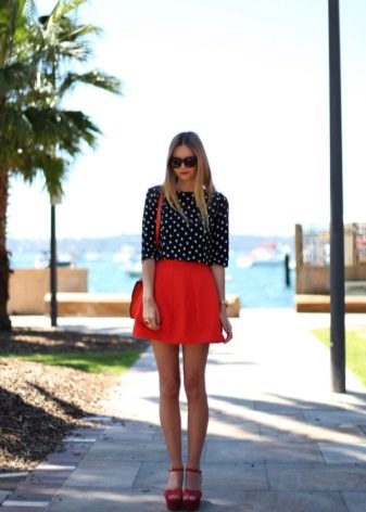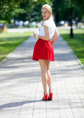 Lush models, such as a tutu, sun or bell, would be appropriate to wear with classic shoes - the restrained style of red sandals on the heel will help emphasize the volume of the skirt and will not draw attention to itself.