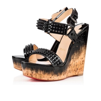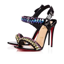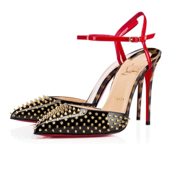 Spike sandals reflect the moment when the sophistication of the brand Christian Louboutin meets punk and grunge. At their frontier, the designer presents black patent leather sandals with metal spikes and red straps around the ankle. They are laconic, sexy in form, but daring and creative in color and decor.