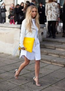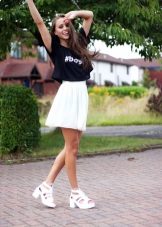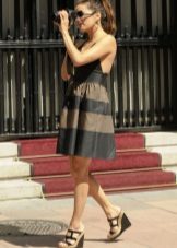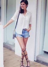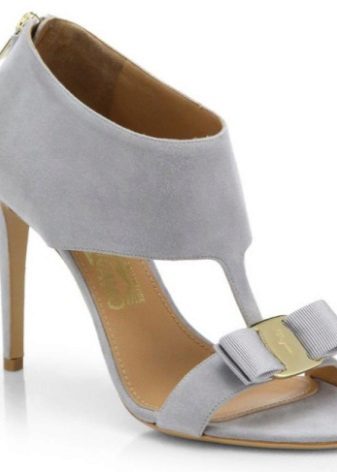 An open dress or outfit made of a light T-shirt, mini-short or short skirt will nicely complement the light sandals on the platform or high heels. Under the summer outfit, consisting of white trousers and the deep color of a light tunic, silver or gold stiletto sandals fashionable this season are ideal.