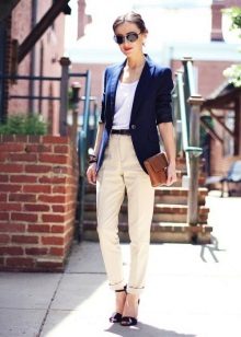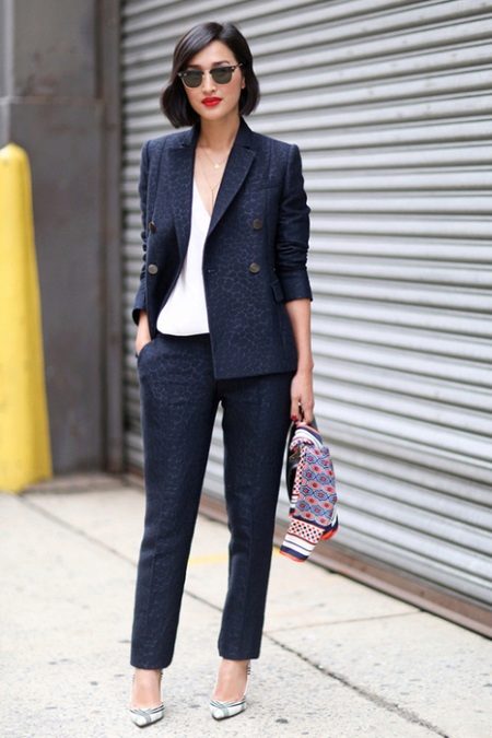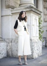 Half-closed sandals are perfect for a business suitfor example, with cropped trousers or a straight pencil skirt and a strict white blouse.
