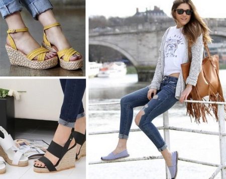 Girls who prefer stylish and comfortable to wear shoes will definitely love espadrilles., resembling soft, comfortable slippers. So they are light and pleasant on the leg. The sole may be flat or have a small height.