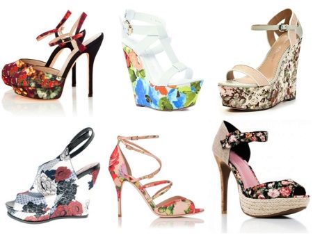 Among the most popular print options, floral design invariably holds first place. Multi-colored or plain buds of all sizes - ideal for hot summers. Flowers can decorate sandals as a textile pattern, and can be used in applications, or artificial compositions to decorate a sock, heel, etc.