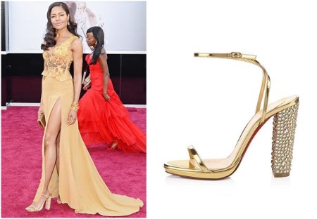 For a luxurious evening outfit you need a luxurious pair of shoes. For example, such as silver or golden sandals. Metallic shoes are one of the hits of this season. Complete with such sandals, a clutch or belt made in the tone of shoes looks great.