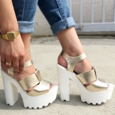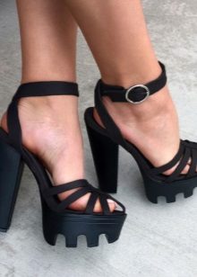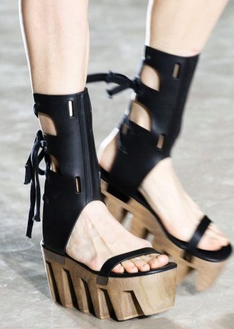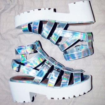 The main rule: the platform should always be in the spotlight. That is, choosing sandals on a high sole with protectors, you need to pay attention to their upper part.