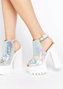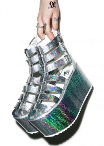 - heel, platform - all and more. At its first advent into the world of fashion, the voluminous solid platform was the main character.Heels with thick soles were much less common: in uniform models and boring color schemes. Now the lineup is expanded so much that both heels and platforms are presented in the most unusual ways.