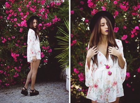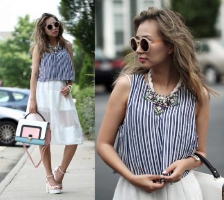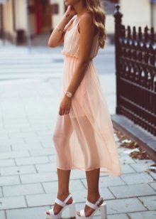 More romantic natures who prefer light flying dresses, dresses of chiffon and chintz of any length are also recommended light colors in shoes. Lush translucent skirts, in combination with tractor-soled sandals, create a very bold, but sophisticated and elegant look.