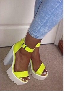 Very bright tractor soles can be seen on the most sophisticated form of shoes - sandals. The game of contrasts and bright colors is the main mood of the summer season.