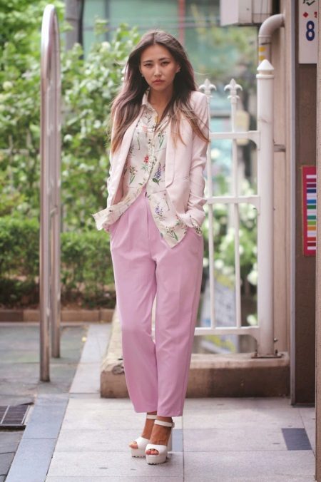 And how do you like the combination of a tracksuit with fashionable summer shoes? There is not even much contrast. It seems that this is quite a sports shoe. On the platform. And heeled shoes. It looks very new, relevant and stylish. Of course, having tried on this image, you won’t make a morning run in the park. But it is likely to go hiking in the city, the sea coast. After all, the tractor sole is so comfortable that you can stay in it all day.