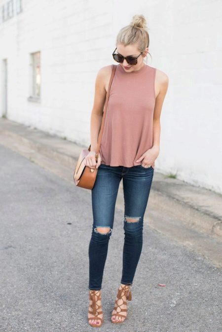 Sandals with a strap sit perfectly together with jeans and trousers.With jeans, a boyfriend and a shirt or t-shirt, sandals with high thick heels will be appropriate.
