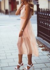Massive-heeled models can also be worn outside the office. Combine them with colorful summer dresses, flying skirts and short tops. If the heel is not very high, then a pair of such sandals will look good with short shorts made of light materials.